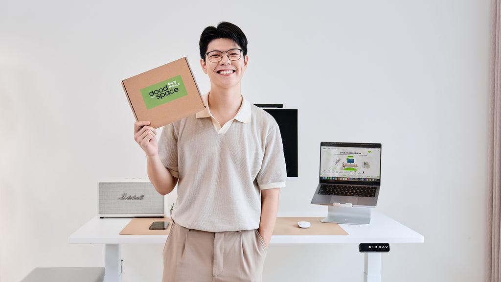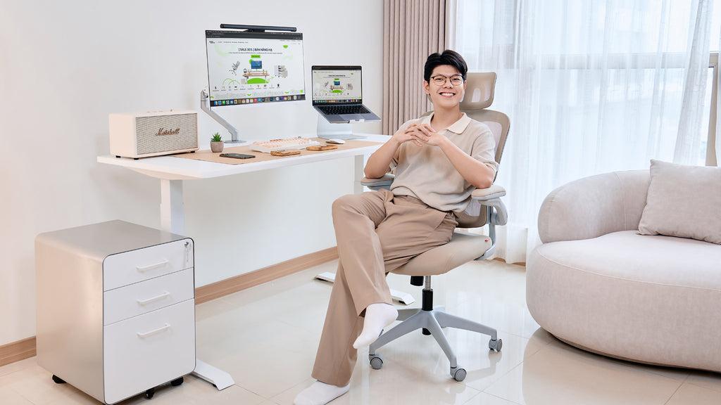 Mạnh Cường chia sẻ: "Công việc của tôi đòi hỏi phải ngồi nhiều, dẫn đến những vấn đề về sức khỏe như đau lưng, mỏi cổ. Sau khi tìm hiểu, tôi biết đến lợi ích của việc làm việc đứng và quyết định thay đổi không gian làm việc của mình để cải thiện sức khỏe."