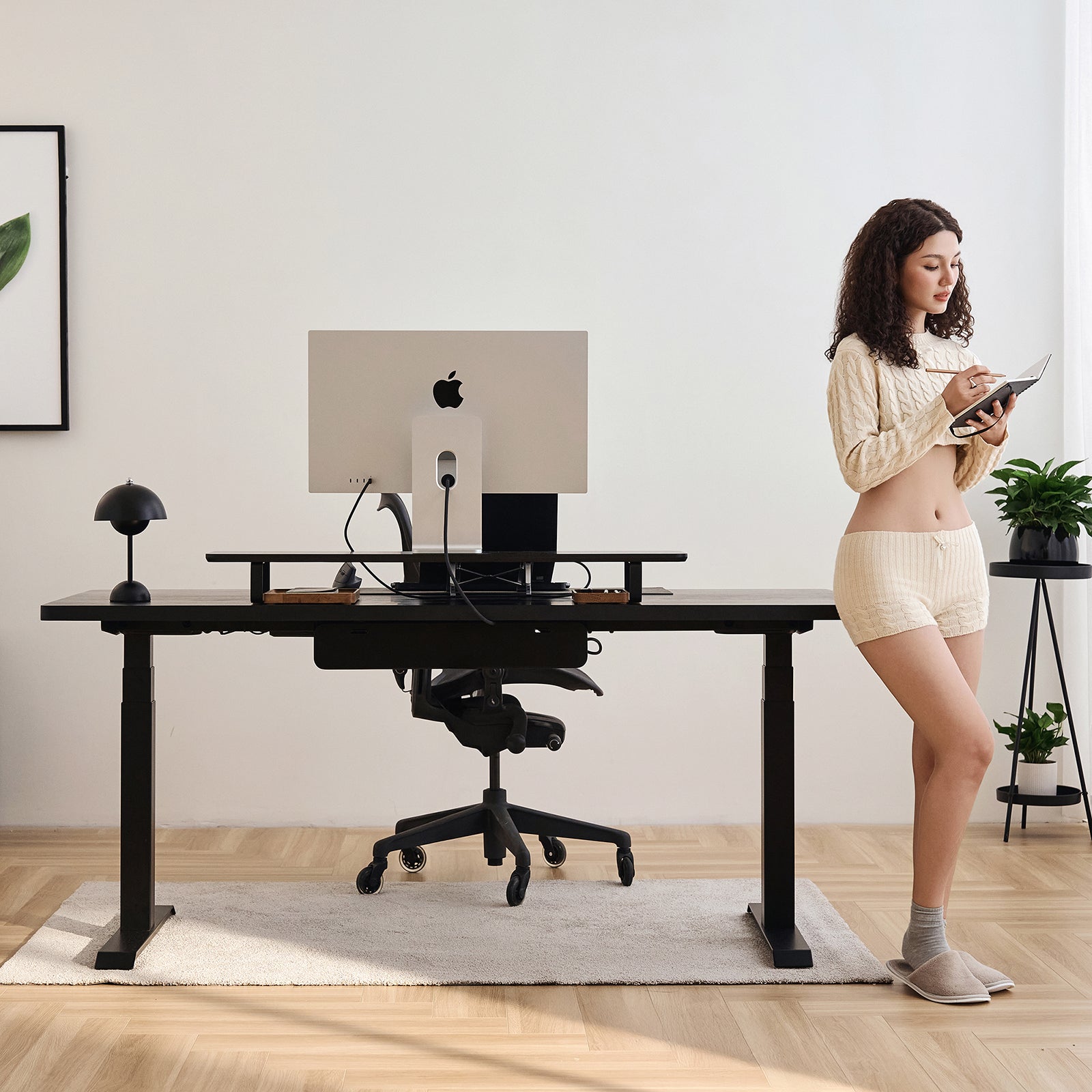 The Elite lift table operates on a modern electric motor system, allowing smooth height adjustment with just one button. The motor operates smoothly, with little noise, ensuring no interruption to work. Some models also have integrated position memory to help you save your favorite height.