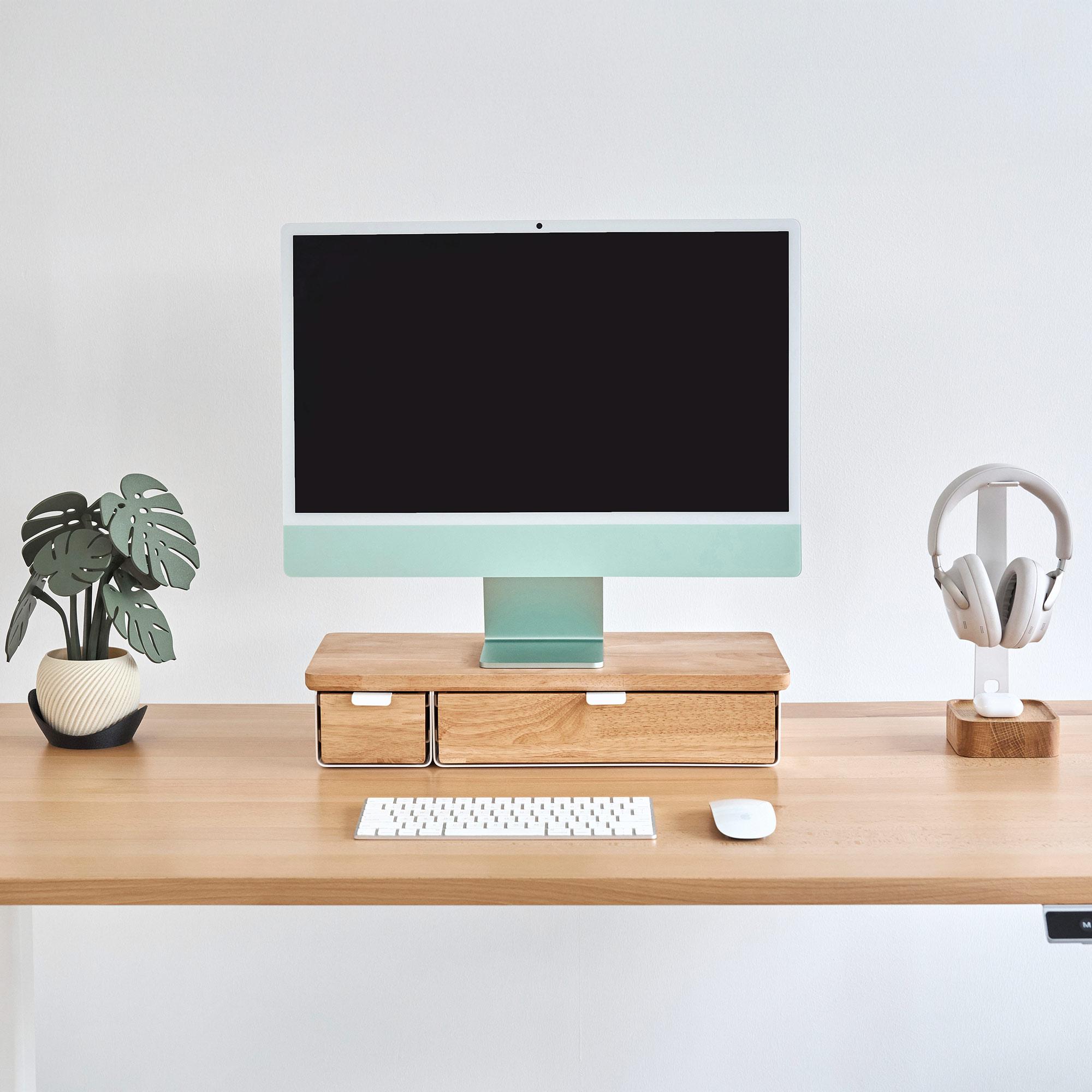 AuraKệ màn hình kèm ngăn kéo - Size L, 2 ngăn, màu gỗ tự nhiên - Khung trắng